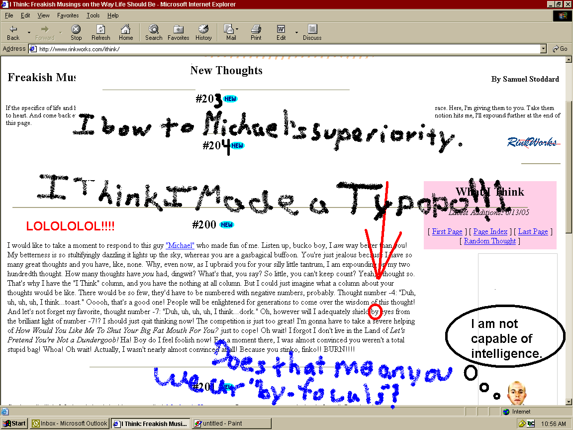 I Think I Am Better Than You, Part 2, By Michael, 10/1/2005